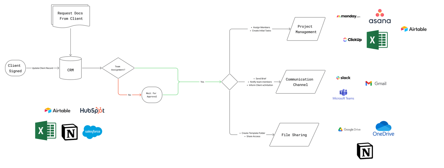 Every time a client signs with your business, a familiar dance begins: scattered emails, forgotten documents, delayed project kickoffs, and team members asking "Did anyone brief the team yet?"
